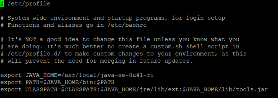 ✒️ vi /etc/profile : vi 에디터를 이용하여 환경변수를 설정하기 위해 아래 문구를 기입한다.